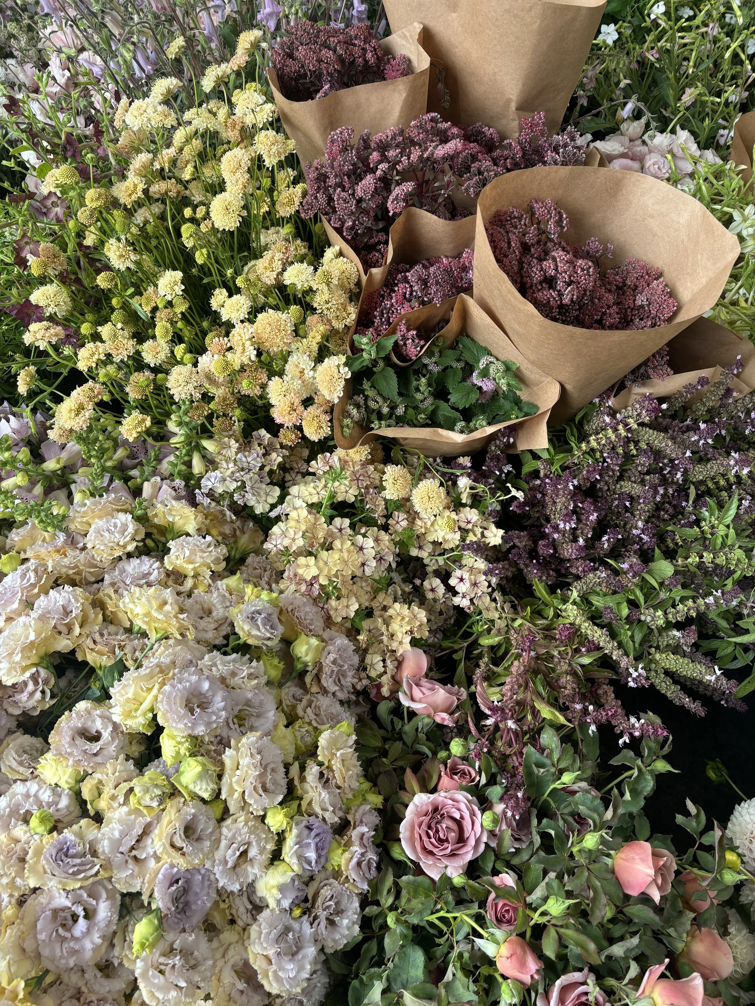 1. Farmers’ Choice Buckets: Seasonal flowers curated by our growers based on your selected color palette (shown below). We will provide a balance of focals/fillers/foliage to fit your design needs.